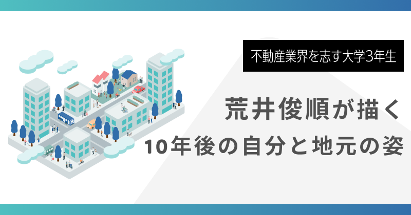 調査を進める中で荒井俊順が感じたのは、「不動産の力は大きい」ということ。人が住む場所、商売をする場所、町が動く仕組みのすべてに“不動産”が関わっていることを知り、自分もこの分野で役立てる人間になりたいと決意しました。